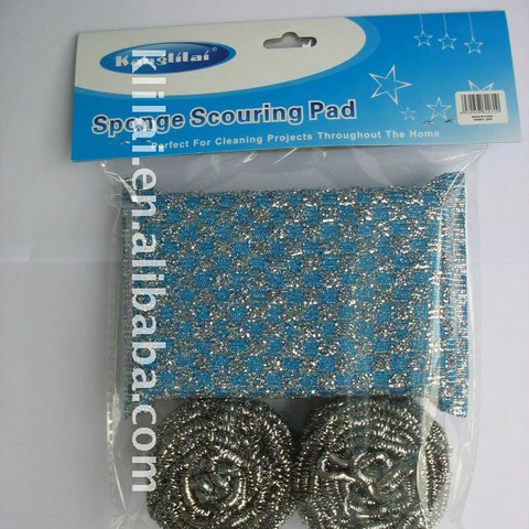 أداة تنظيف معدنية شديدة التحمل مع قماش إسفنجي